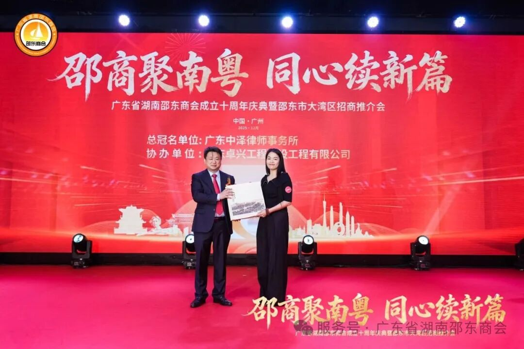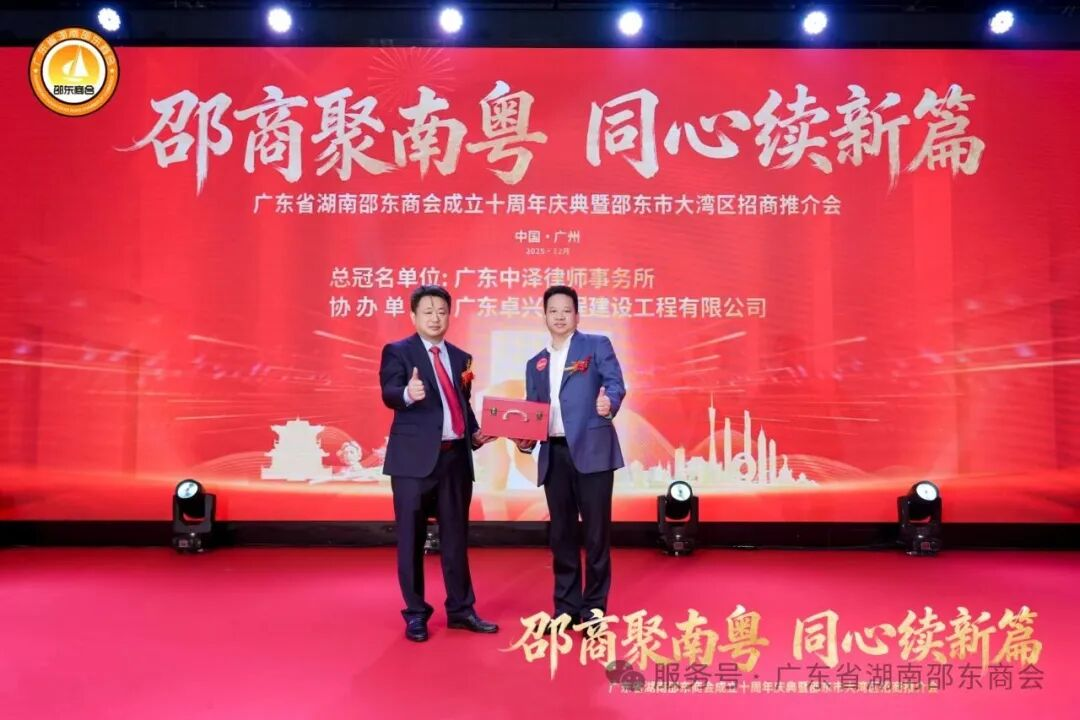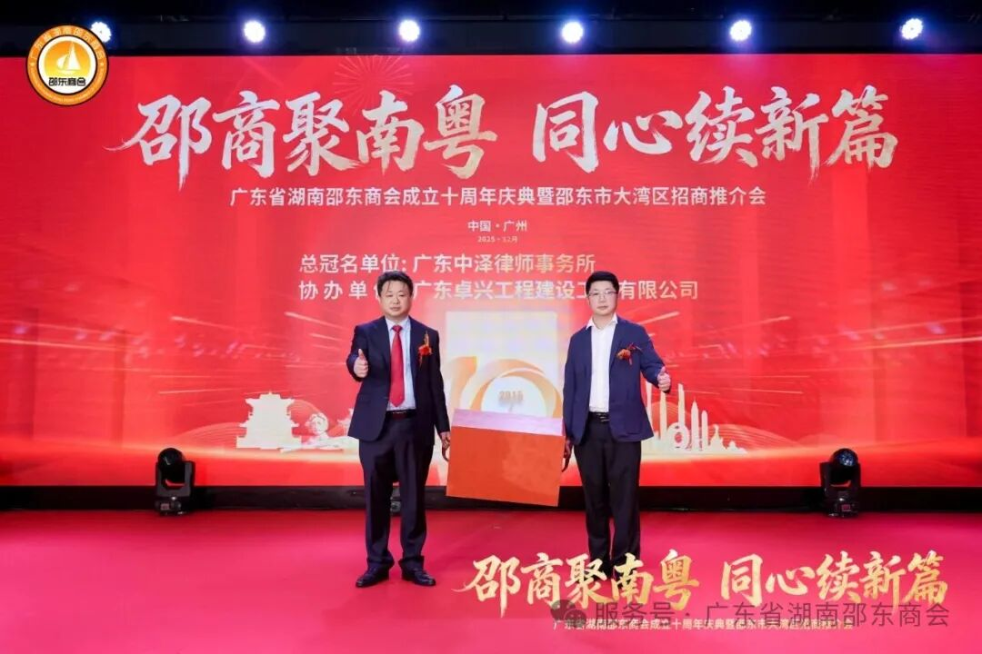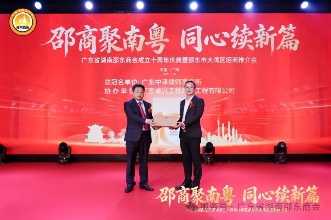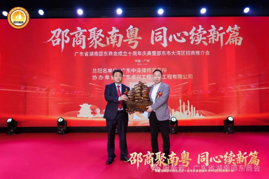 十年栉风沐雨,十年薪火相传;十年砥砺奋进,十年硕果盈枝。2025年12月21日,广东省湖南邵东商会成立十周年庆典暨邵东市大湾区招商推介会于广州天河盛启华章。近700名粤湘两地政界翘楚、教育贤达、医疗精英、兄弟商会同仁,以及心系桑梓的邵东籍乡亲和会员企业代表齐聚一堂,共贺商会十年荣光,共商跨界合作大计。现场乡情氤氲、暖意融融,一股协同发展的磅礴力量在欢聚中升腾凝聚。