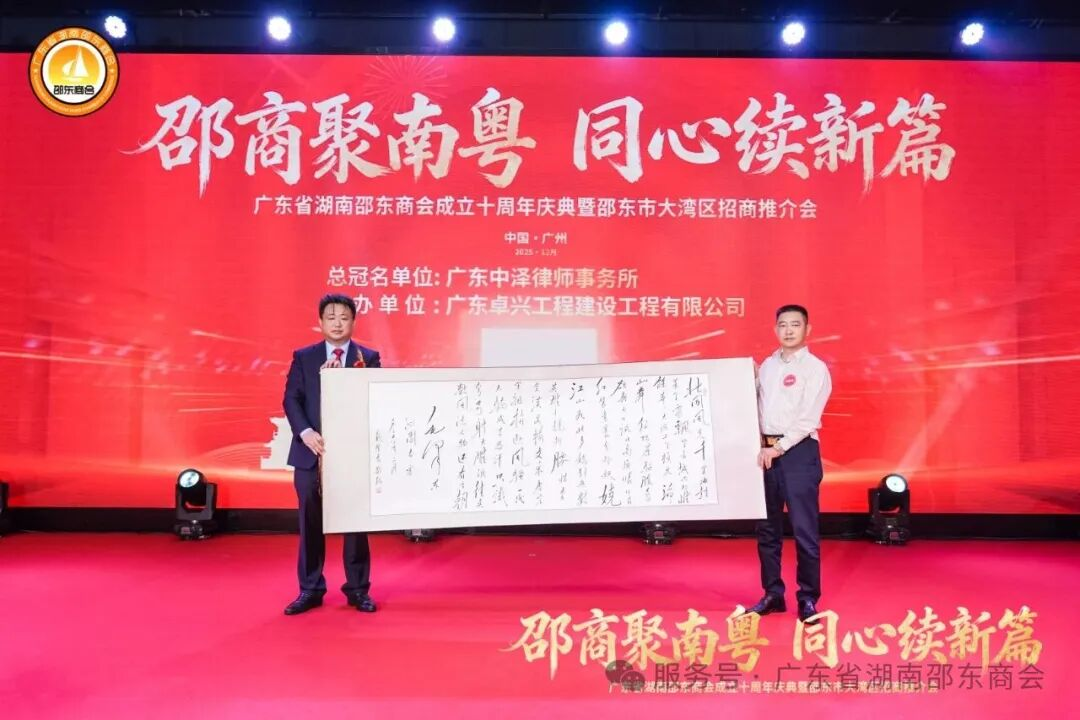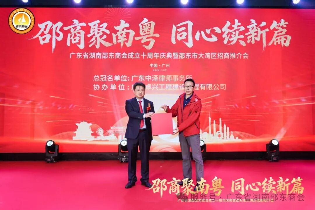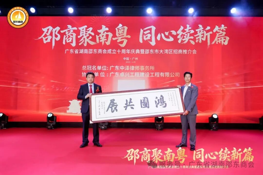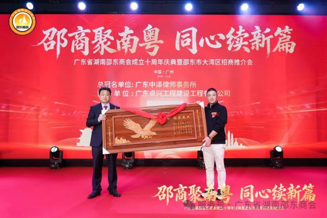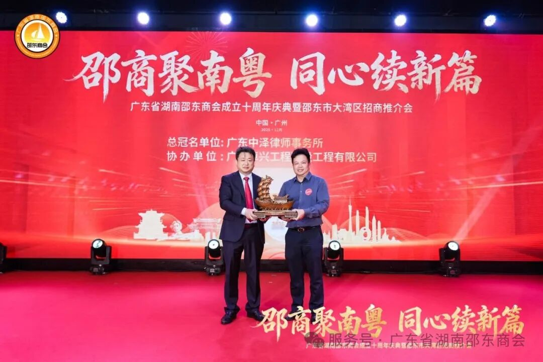 十年栉风沐雨,十年薪火相传;十年砥砺奋进,十年硕果盈枝。2025年12月21日,广东省湖南邵东商会成立十周年庆典暨邵东市大湾区招商推介会于广州天河盛启华章。近700名粤湘两地政界翘楚、教育贤达、医疗精英、兄弟商会同仁,以及心系桑梓的邵东籍乡亲和会员企业代表齐聚一堂,共贺商会十年荣光,共商跨界合作大计。现场乡情氤氲、暖意融融,一股协同发展的磅礴力量在欢聚中升腾凝聚。