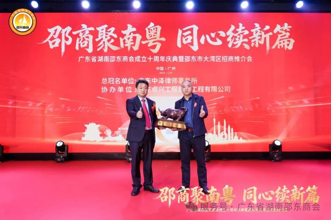 邵商聚南粤,同心续新篇。此次庆典的圆满举办,不仅系统梳理了商会十年发展成果,更凝聚了全体邵商共谋发展的强大合力。展望未来,在全体邵商的同心携手下,广东省湖南邵东商会必将在新时代征程中续写更多同心共赢的精彩答卷,为粤湘两地经济文化交流与高质量发展注入源源不断的邵商动力!