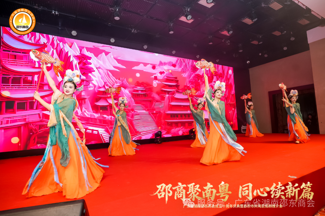 更有无数商会会员企业代表从大湾区各地奔赴而来,乡音交汇、温情相拥,让庆典现场洋溢着浓浓的桑梓情谊与热烈氛围。庆典现场布置独具匠心,处处洋溢着喜庆热烈的氛围。精致的邵商文化展板错落有致,将商会十年的发展历程、荣誉成就娓娓道来;璀璨的灯光与典雅的装饰交相辉映,彰显着邵商的大气与风范;悠扬的乐曲萦绕全场,让每一位到场嘉宾都感受到浓浓的乡情与暖意。精彩纷呈的歌舞表演轮番登场,激昂的鼓乐演奏振奋人心,曼妙的舞蹈表演赏心悦目,台下掌声雷动、喝彩不断,现场一派热闹非凡的景象。